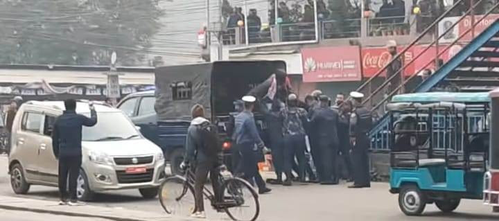 बिजुलीबजार–नयाँबानेश्वर सडक खण्डमा भेला भएर प्रदर्शनमा उत्रिएका शिक्षकहरुलाई प्रहरीले रोक्न खोज्दा झडप भएको हो । विद्यालय शिक्षा ऐन जारी हुनुपर्ने माग राख्दै गत चैत्र २० गते देखि आन्दोलनको २६ औं दिनमा शिक्षक र प्रहरीबीच धकेलाधकेल भएको हो। साेहि क्रममा निषेधित क्षेत्र तोड्ने प्रयास गर्दै शिक्षकले प्रहरीमाथि ढुंगा प्रहार गरेपछि प्रहरीले पानीको फोहोरा हानेको छ।
